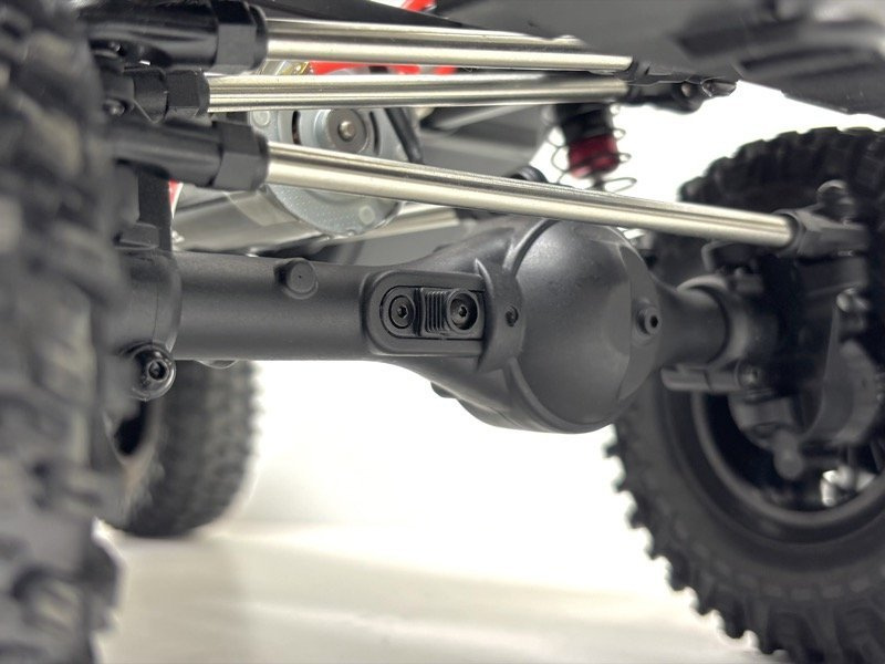 Nová generace expedičního speciálu Absima na podvozku CR4.4 1:10 s excelentními jízdními vlastnostmi. Model má pohon všech kol, je vybaven portálovými nápravami pro maximální průjezdnost terénem. Podvozek má díky novému umístění motru, převodovky a baterie velmi nízké těžiště, což výrazným způsobem vylepšuje jízdní vlastnosti. Dvoustupňová převodovka, manuálně (ne z vysílače) ovládané uzávěrky diferenciálů. Pevný plastový rám s rozvorem 325mm je vybaven plastovými podběhy, které výrazně omezují pronikání nečistot na šasi. Nápravy jsou zavěšené na klasickém 4-linku (kovové linky). Poloosy jsou vybaveny odolnými U klouby, přední kola mají úhel zatočení 45° na každou stranu. Měkké pneumatiky s dezenem typu Hyrax s velkým gripem jsou nalepené na plastových diskách. Tlumiče jsou olejové, kovové. Všechny převody jsou kovové a komplet zakrytované. Pastorek s převodovým kolem mají modul M0,6. Silné servo řízení s tahem 25kg s kovovými převody ovládá přední kola přes účinný tlumič řízení, toto řešení výrazně prodlužuje životnost serva a snižuje nároky na jeho výkon (tah). Elektromotor je stejnosměrný typ 550 s velkým točivým momentem. Regulátor je samostatný - Hobbywing WP-1060 60A, BEC 6V/3A. Konektor na regulátoru je T-Dean. Karosérie je vybavena mnoha maketovými doplňky.