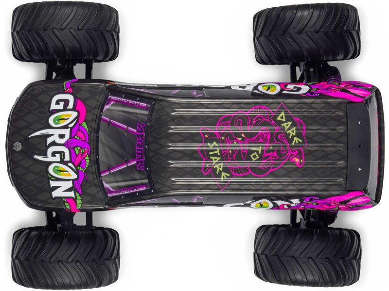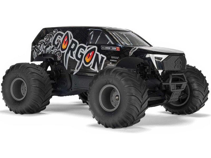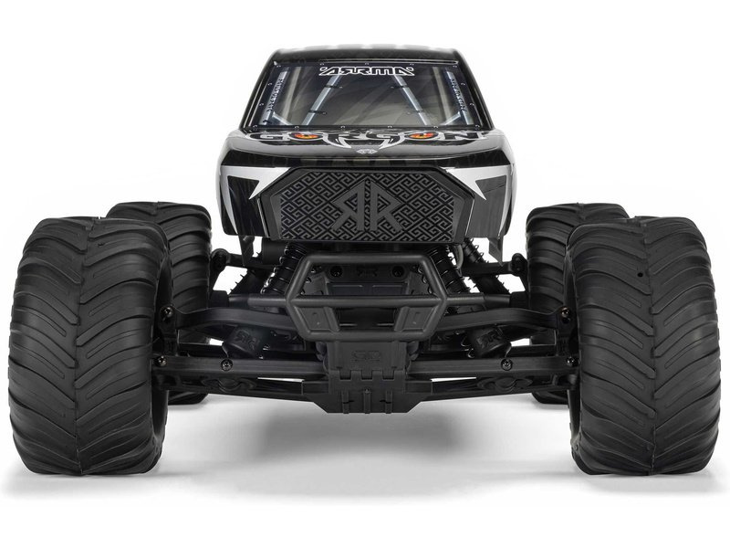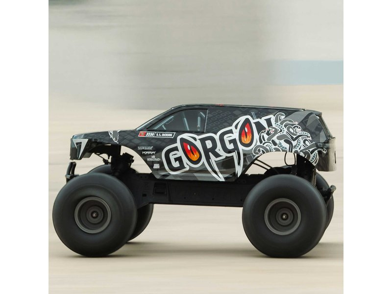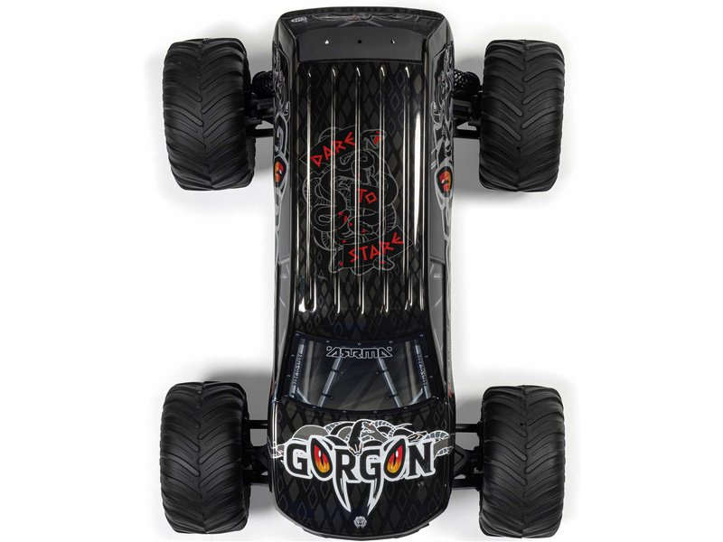 Ihned po vybalení přitáhne Gorgon vaši pozornost díky svému originálnímu vzhledu. Karoserie je z výroby dokončena ve velmi atraktivním moderním stylu a je barevně sladěna s jednotlivými díly šasi, jako jsou pružiny, přihrádka na baterii, kluzné desky a nárazníky. Osvědčená technologie ARRMA má díky kompozitnímu šasi vysokou odolnost. Nezávislé zavěšení, olejové tlumiče a nastavitelná světlá výška zajišťují komfortní jízdu. Pro nezastavitelnou trakci přenáší 2WD převodovka výkon ze stejnosměrného motoru MEGA 550 do masivních pneumatik dBoots ® Chevron o rozměru 130mm, nalepených na nylonových discích 57mm. Použité kovové převody jsou dostatečně odolné i pro případný upgrade na střídavý pohon.