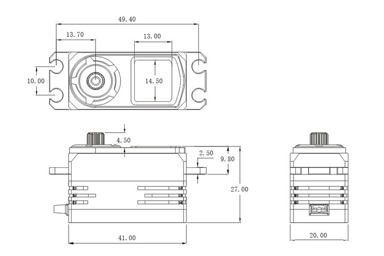 Generace HiVOLT CORELESS (bezjádrový motor) LOW PROFILE servo CH712S SSR speciálně navrženo pro 1/10 On i Off-Road modely s reakční rychlostí až 0,049s a 12,6kg/cm tahu/točivého momentu. Servo využívá celohliníkové pouzdro pro dosažení optimálních teplot ale i tuhosti, zatímco CORELESS motor a titanovo/hliníkové převody zajišťují vysoký výkon a trvanlivost. Servo je vybaveno JR konektorem o délce 180mm v černé barvě.