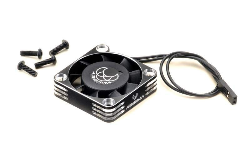 Výkonný ventilátor pro aktivní chladiče. Hliníkové tělo ventilátoru výrazně pomáhá odvodu tepla z chlazeného regulátoru nebo elektromotoru
