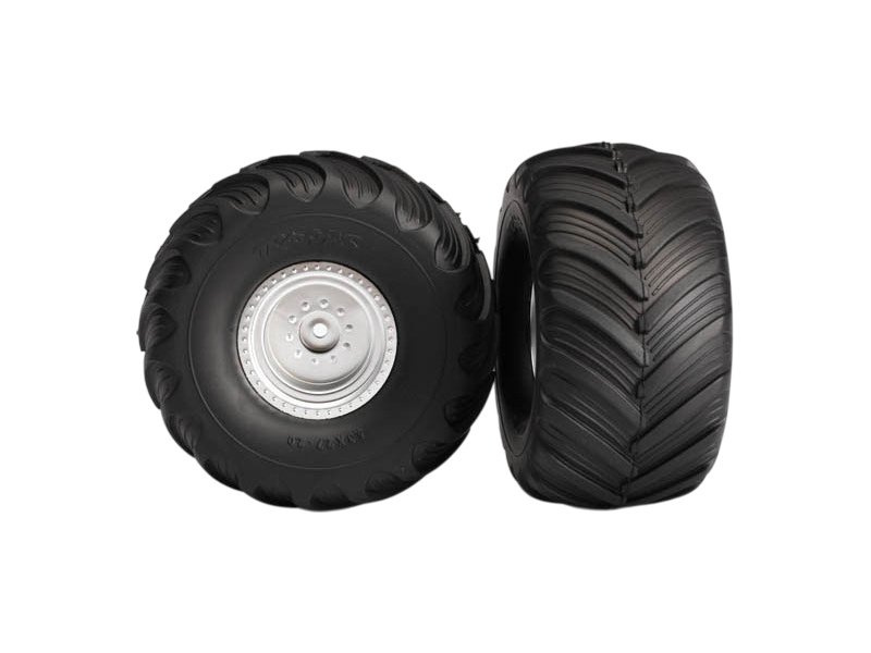 Kód výrobku: TRA3665 Kompletní zadní kola pro nitro nebo přední kola pro elektro auta. Přesná replika Moster Jam kol. Stříbrné disky s nalepenými pneumatikami a vložkou. Více informací