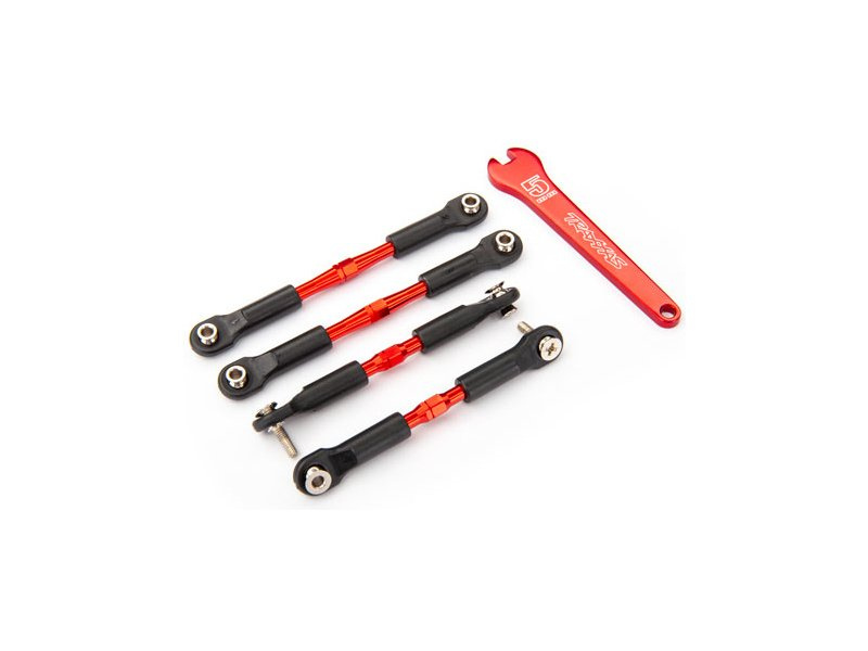 Kód výrobku: TRA3741X Sada dvou předních a dvou zadních hliníkových červeně eloxovaných spojovaček. Vzájemná vzdálenost kulových čepů je 69 / 82 mm. Délka samotný hliníkové spojovačky je 39 / 49 mm. Zašroubováním resp. vyšroubováním koncovek lze… Více informací